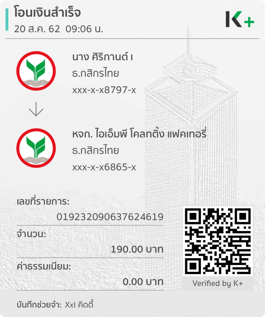 ข้อมูลการสั่งซื้อเลขที่ 201908000774