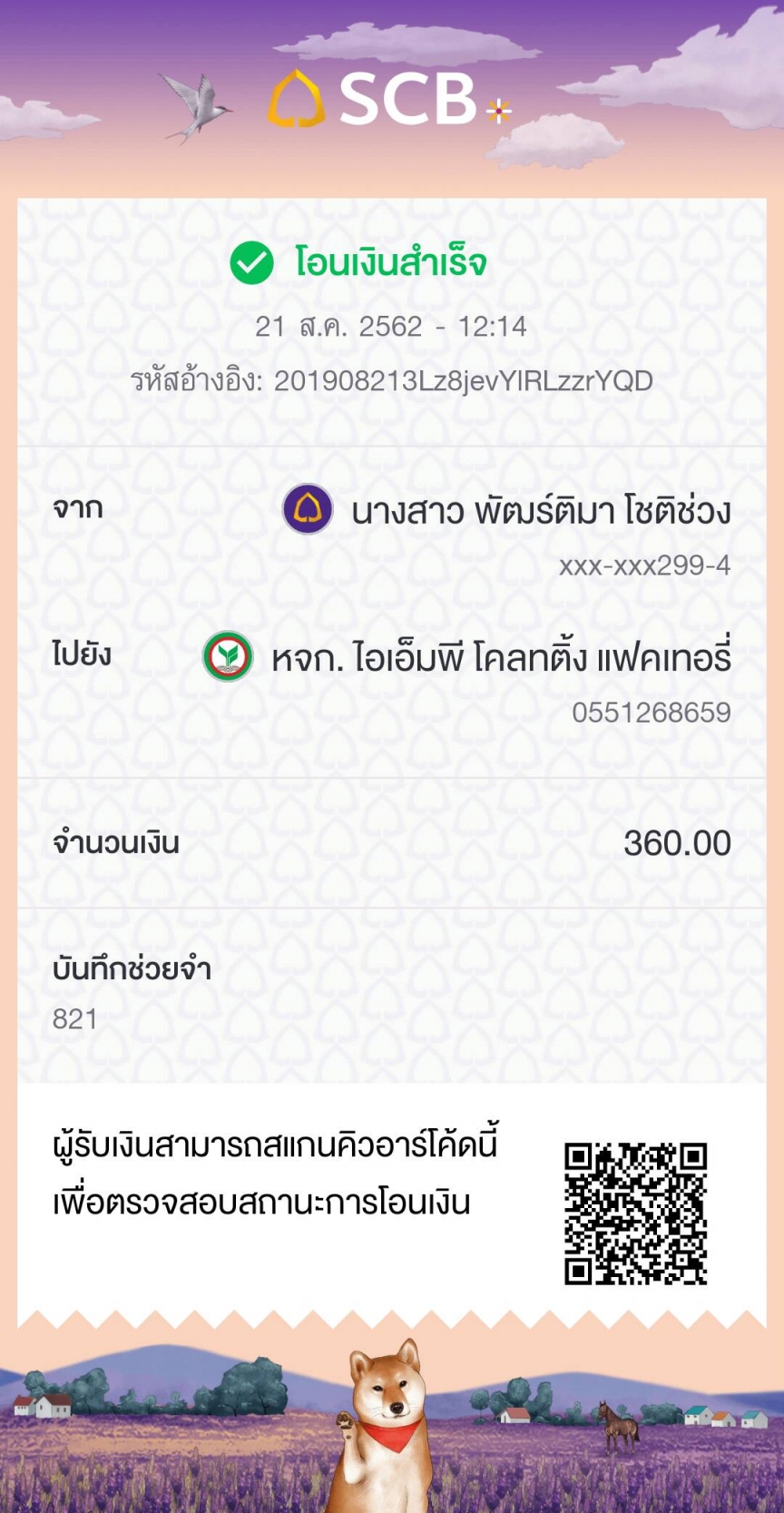 ข้อมูลการสั่งซื้อเลขที่ 201908000821