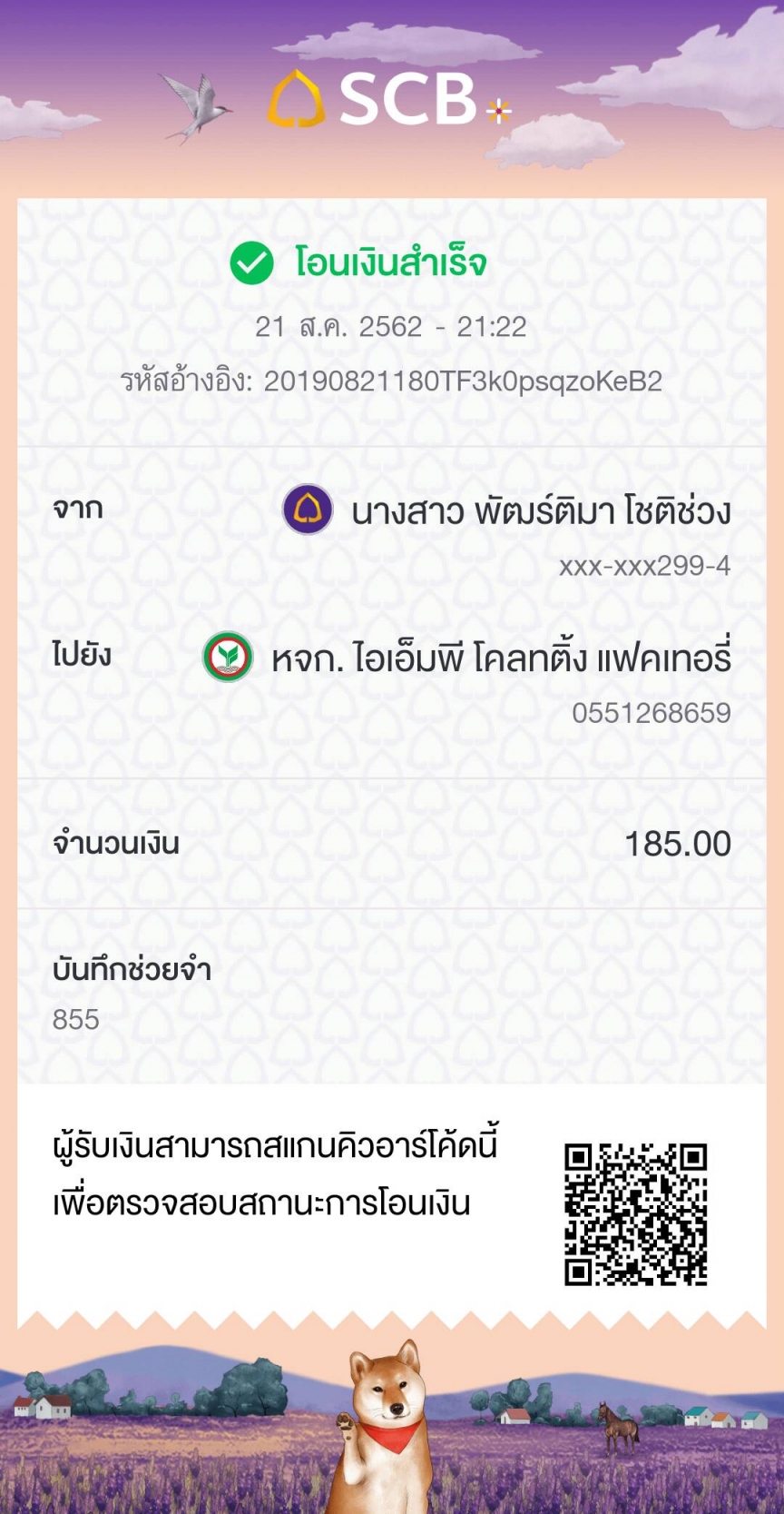 แจ้งการโอนเงินจาก