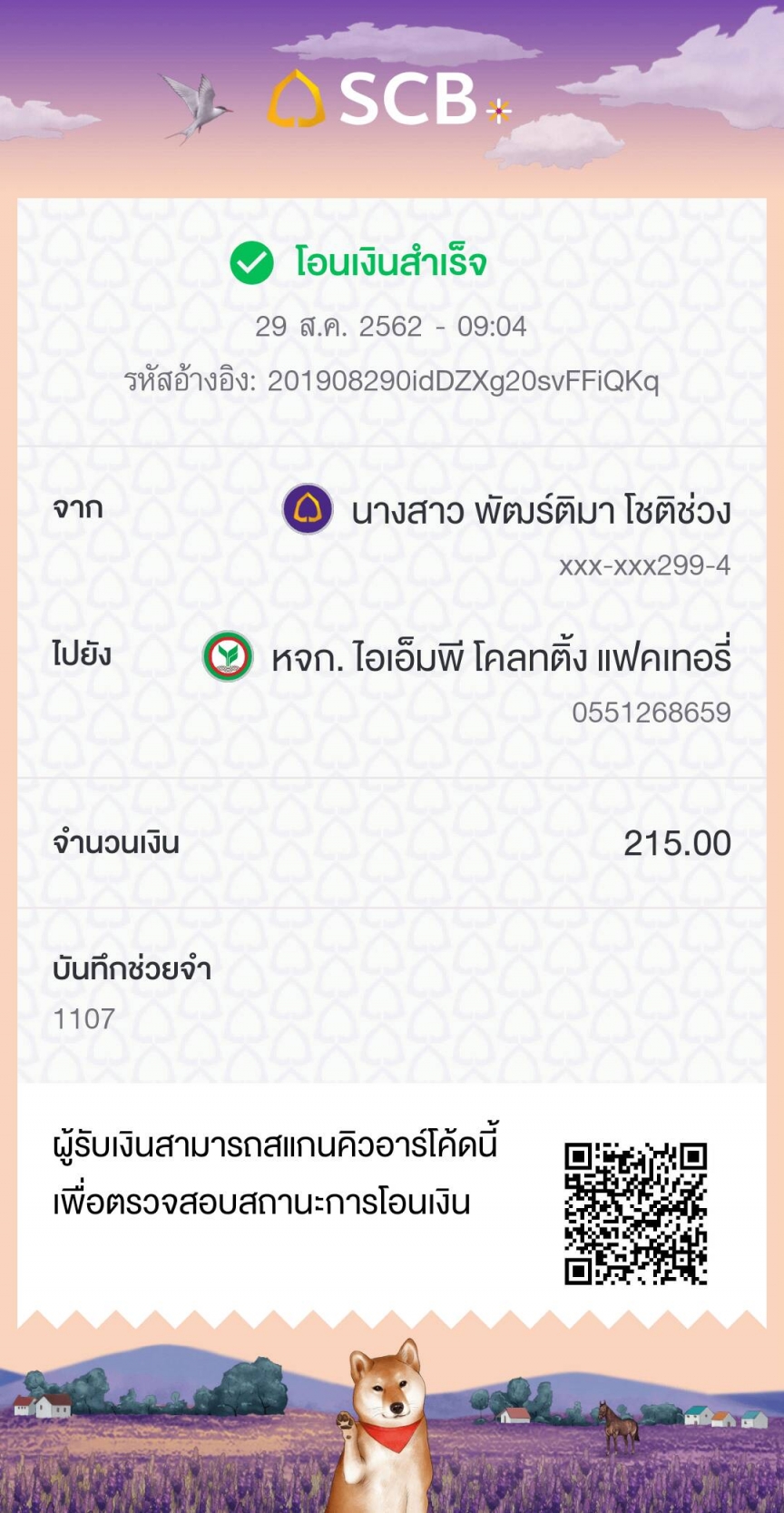 ข้อมูลการสั่งซื้อเลขที่ 201908001107