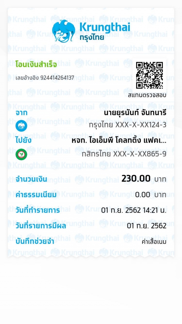 แจ้งการโอนเงินจาก