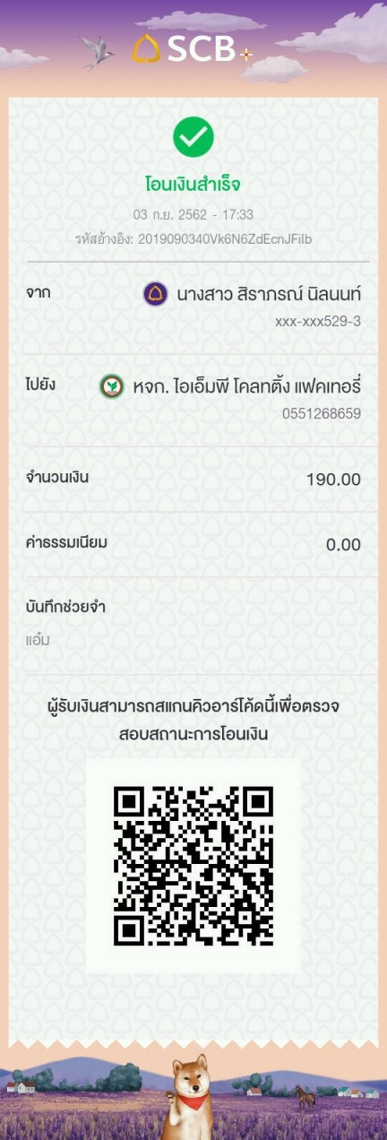 แจ้งการโอนเงินจาก