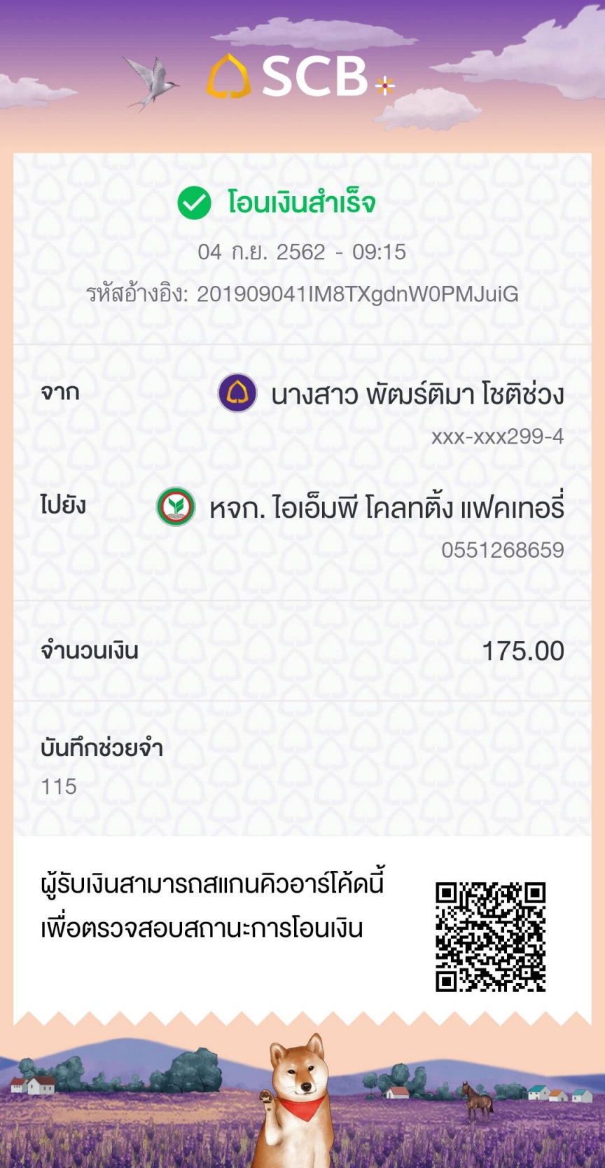 แจ้งการโอนเงินจาก