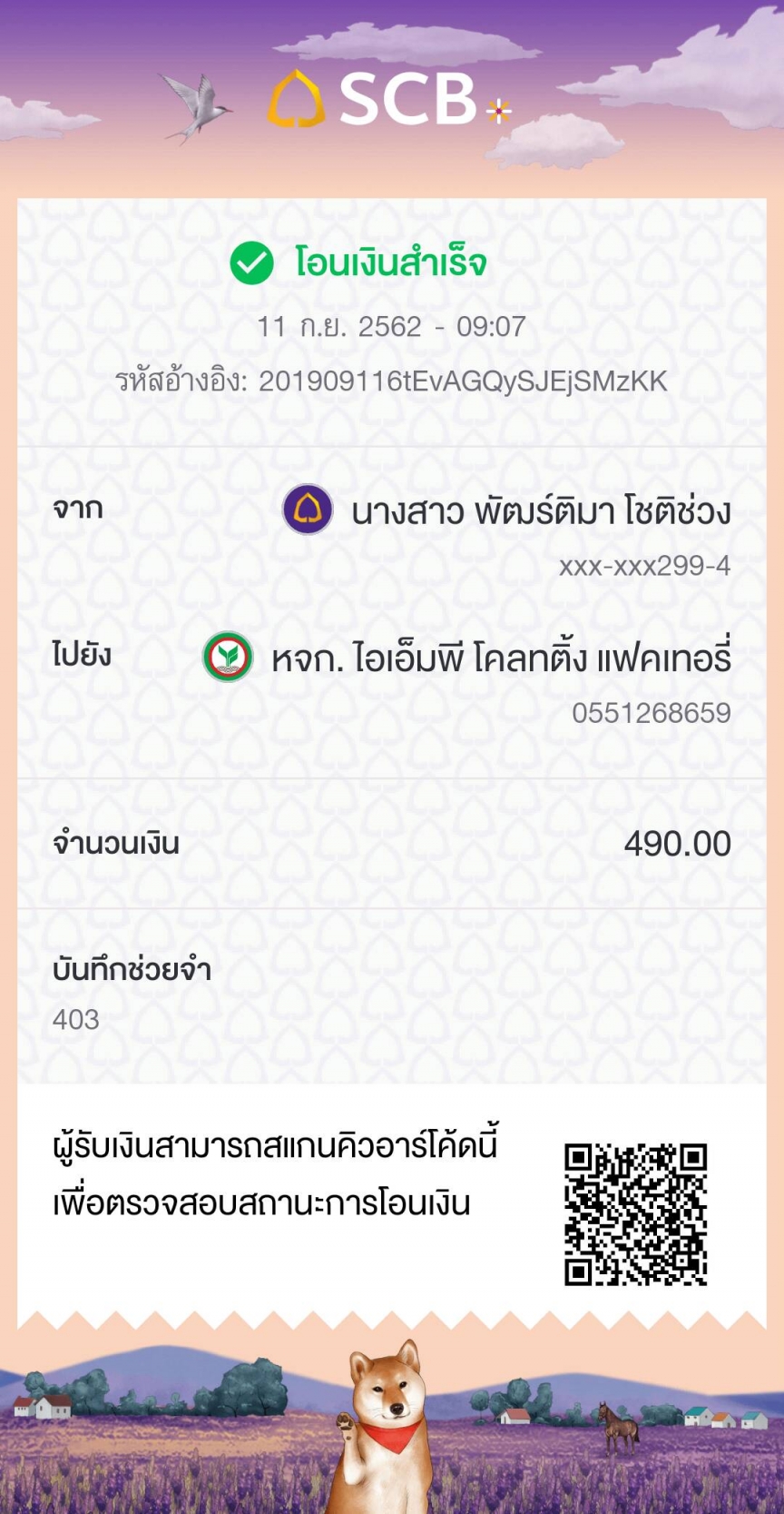 ข้อมูลการสั่งซื้อเลขที่ 201909000403
