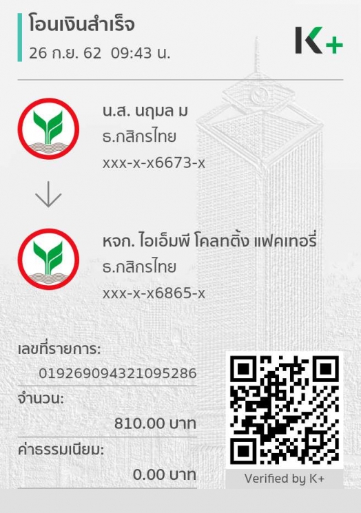 สลิปการโอนเงิน