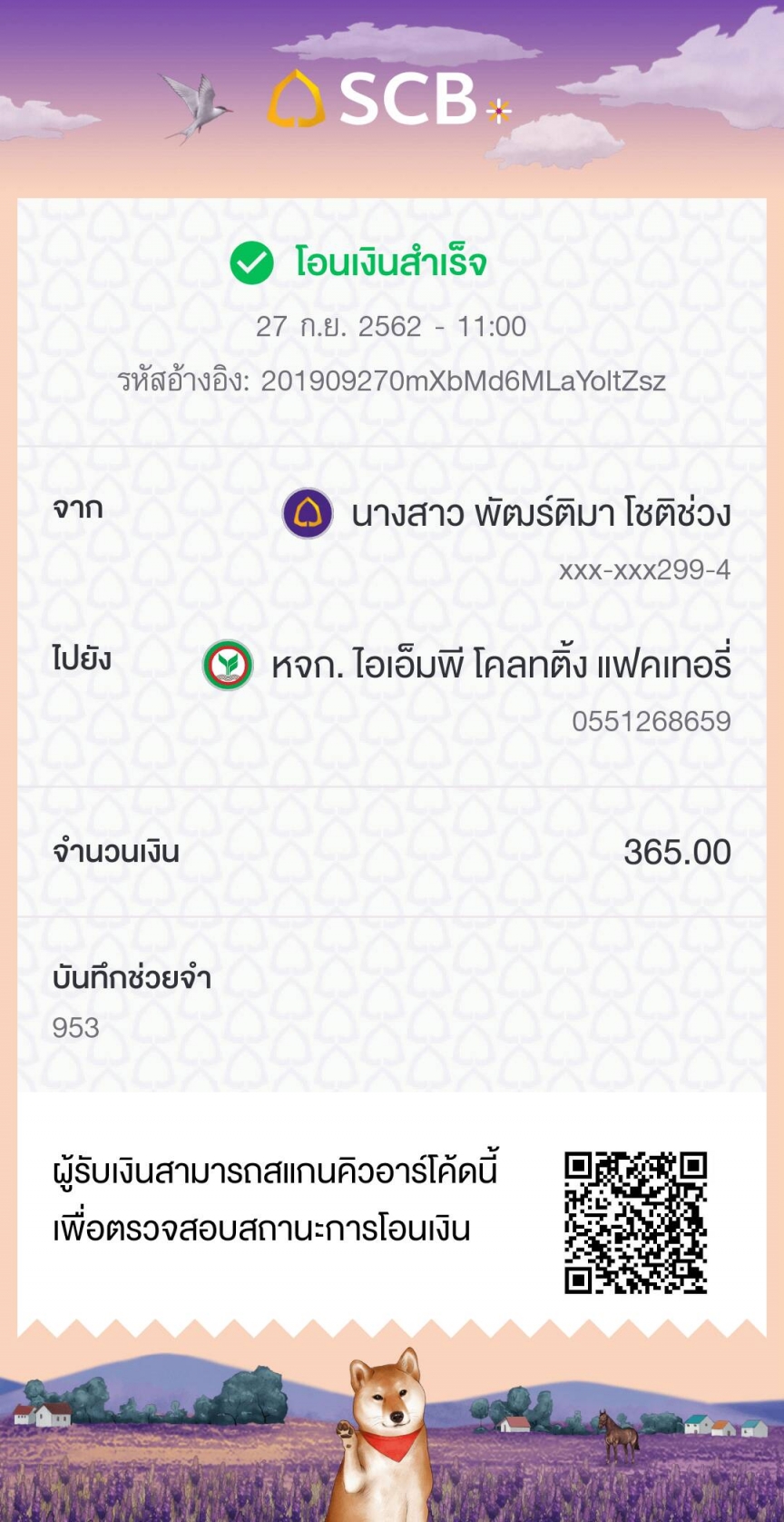 แจ้งการโอนเงินจาก