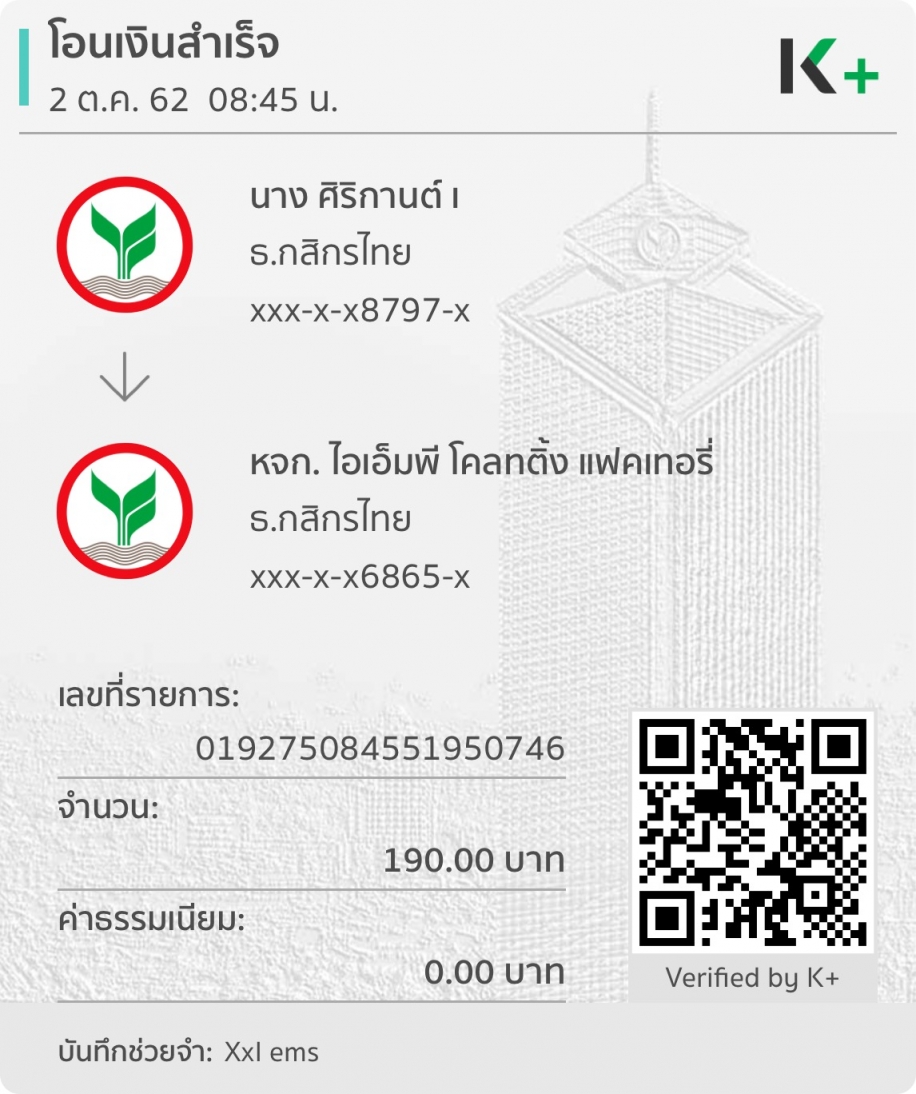 ข้อมูลการสั่งซื้อเลขที่ 201910000051