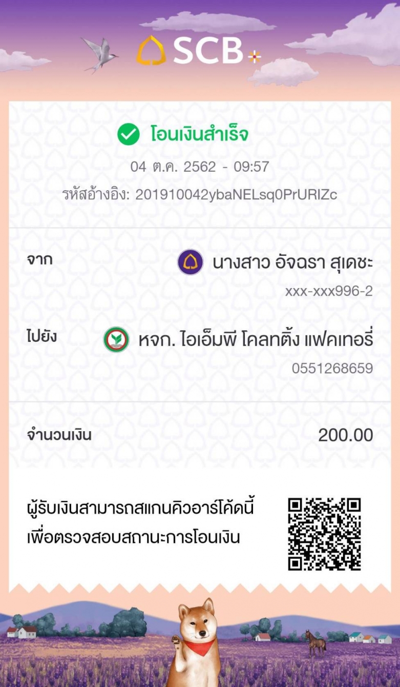 สลิปการโอนเงิน