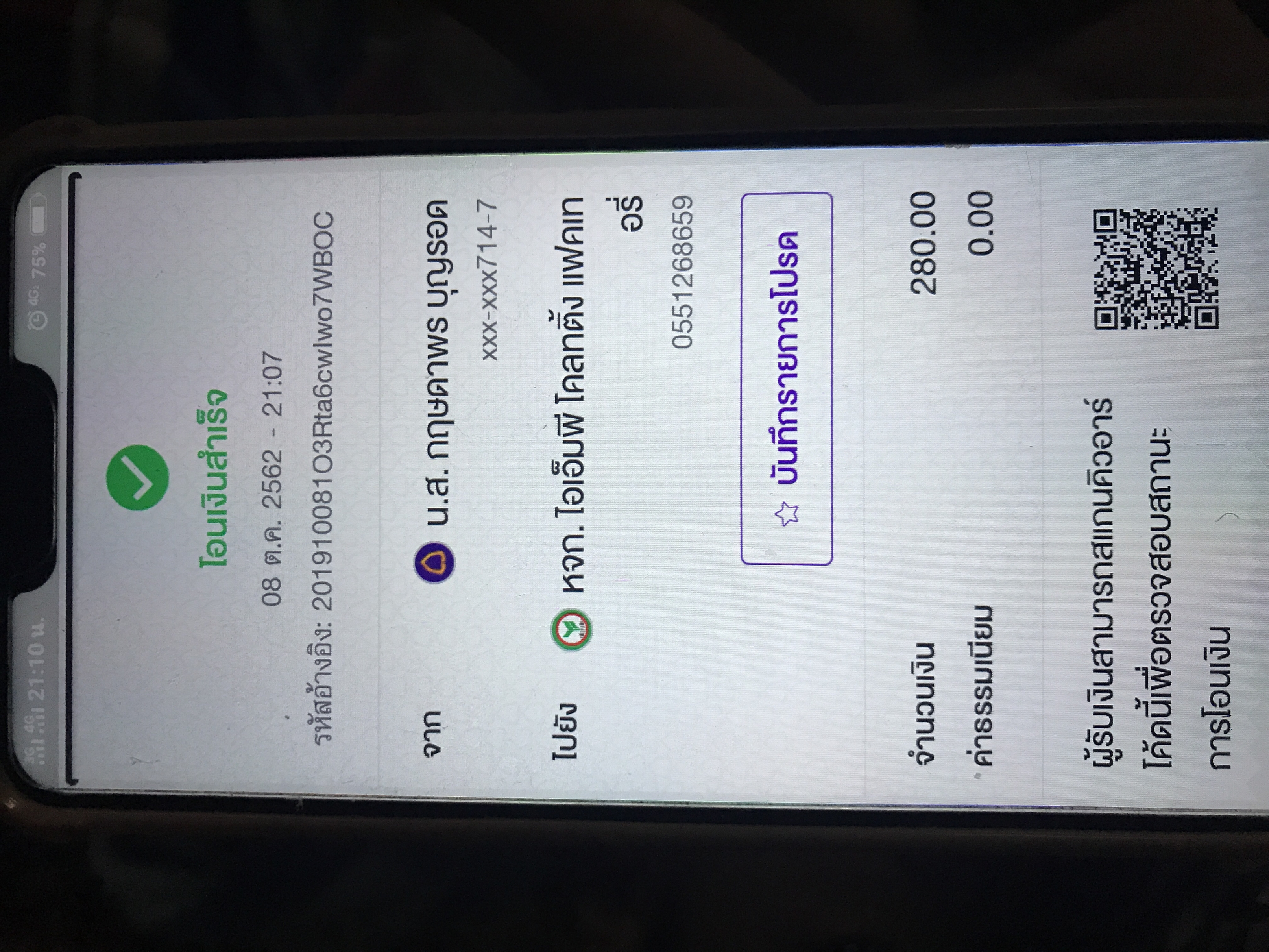 สลิปการโอนเงิน