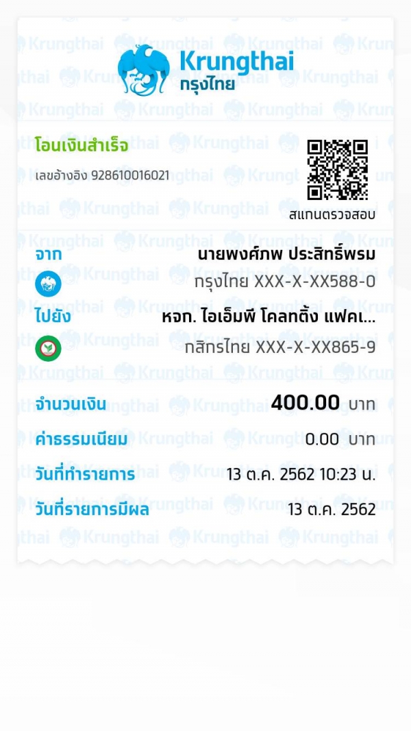 สลิปการโอนเงิน