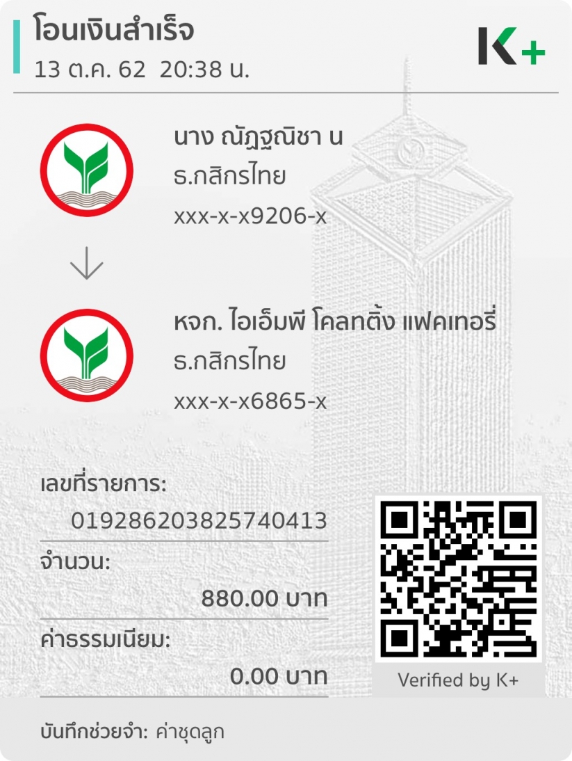 ข้อมูลการสั่งซื้อเลขที่ 201910000368