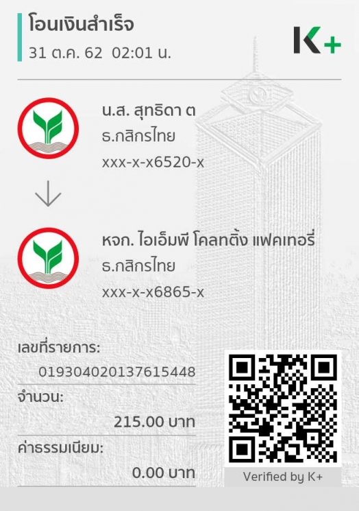 ข้อมูลการสั่งซื้อเลขที่ 201910000612