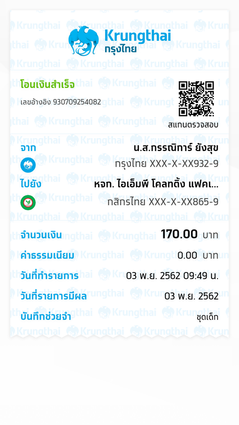 แจ้งการโอนเงินจาก