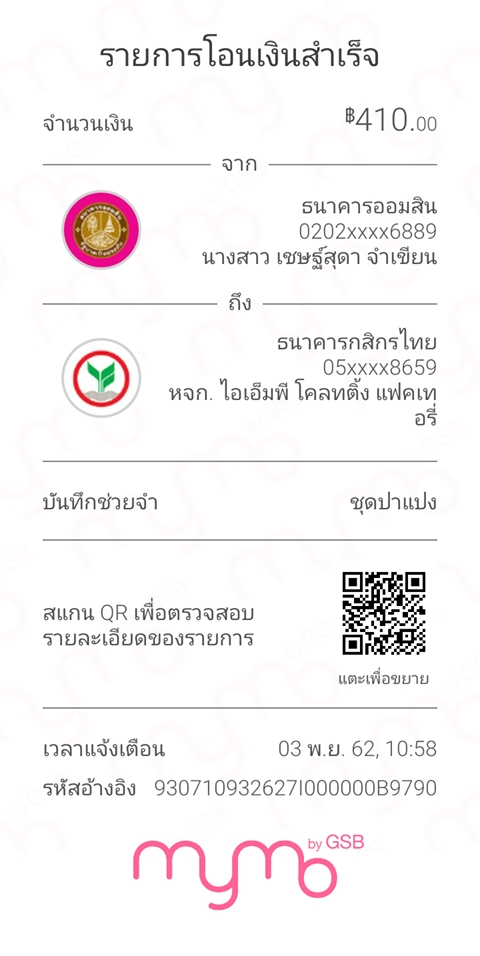 สลิปการโอนเงิน