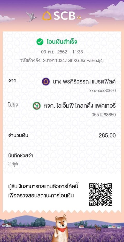 แจ้งการโอนเงินจาก