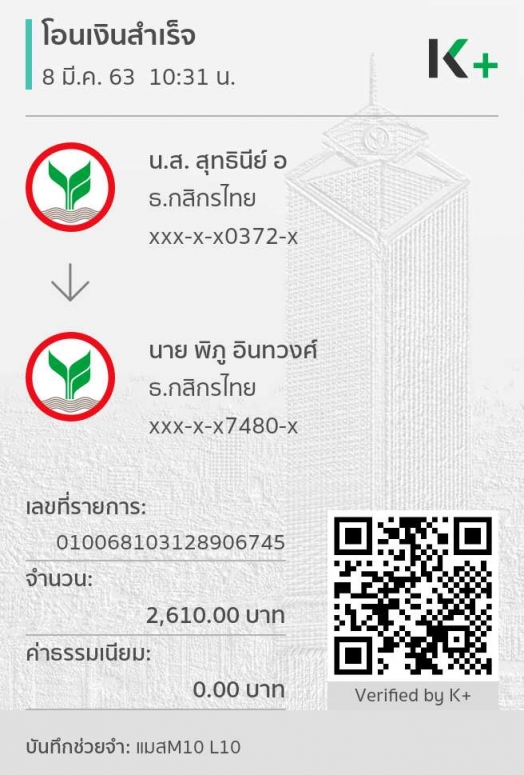 แจ้งการโอนเงินจาก