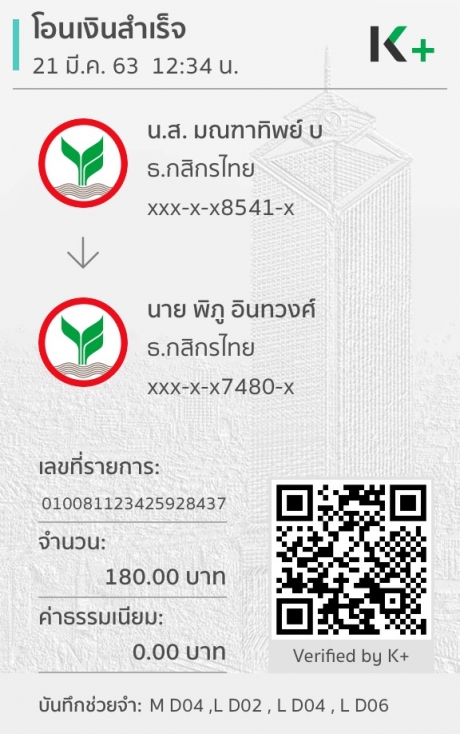 แจ้งการโอนเงินจาก