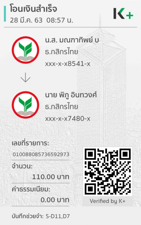สลิปการโอนเงิน