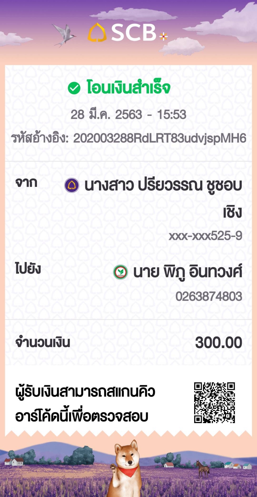 แจ้งการโอนเงินจาก
