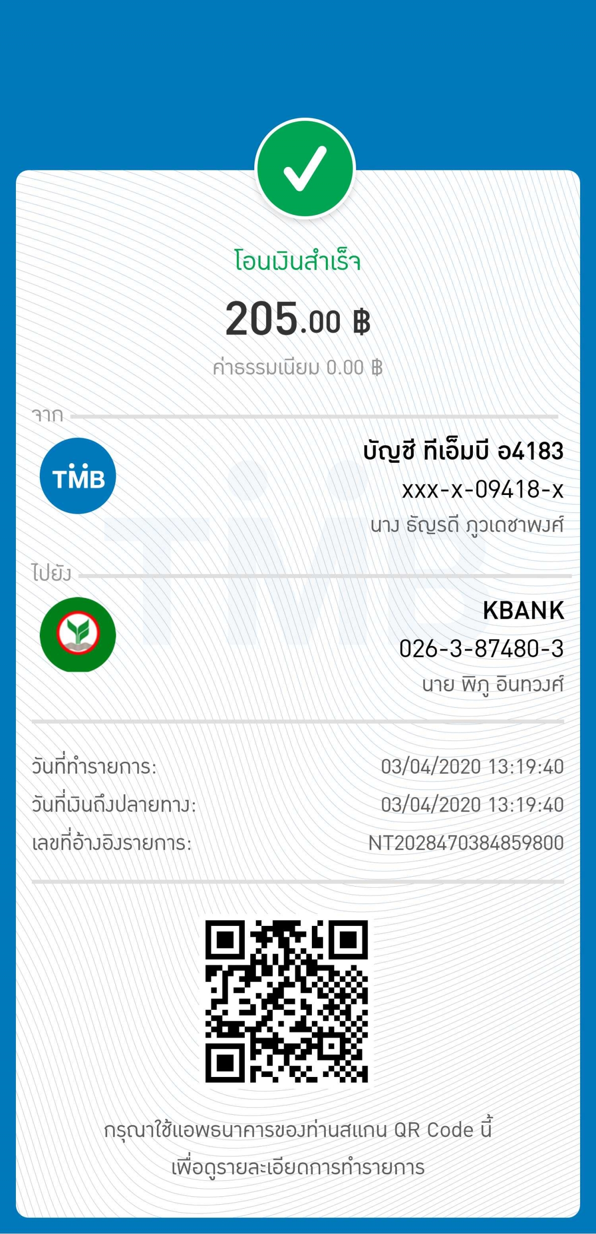 แจ้งการโอนเงินจาก