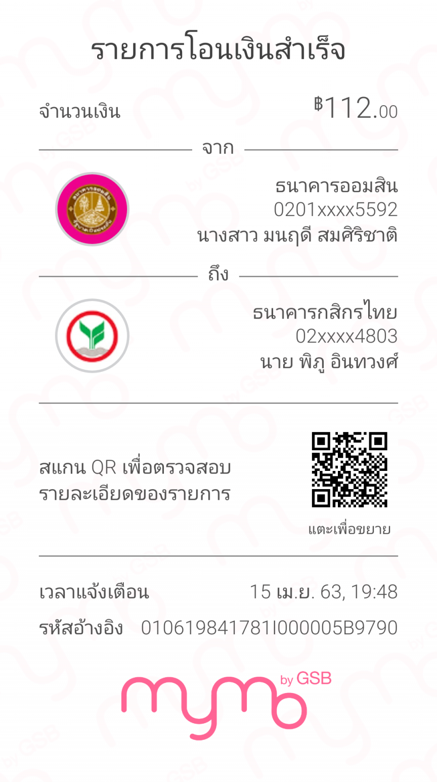 แจ้งการโอนเงินจาก