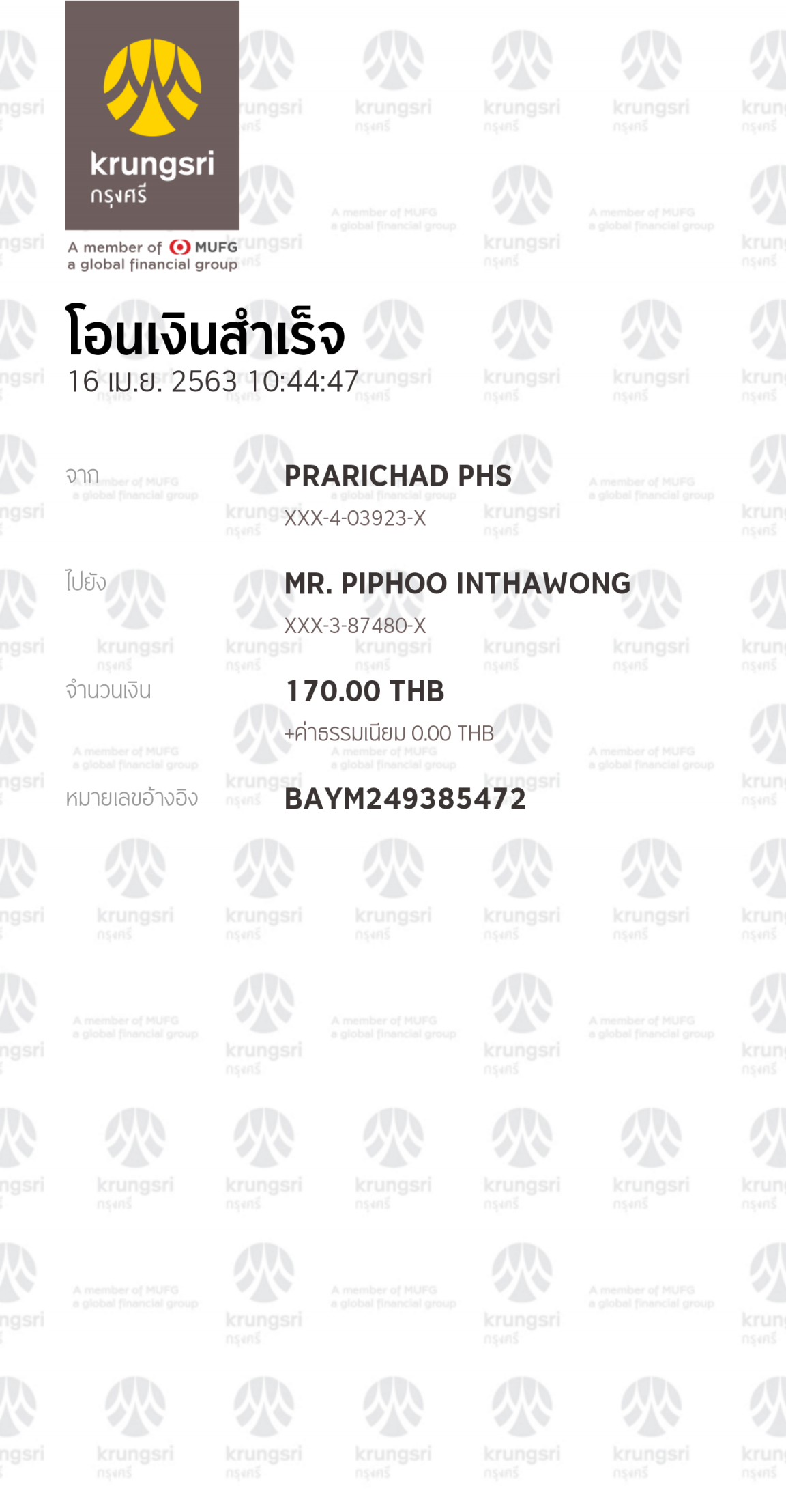 คุณ นส.ประริชาด พฤกสลุง ที่อยู่ : (หมู่บ้านพฤกษาB) 40/3296 ซ.31 ม.4 ต.คลองสาม อ.คลองหลวง จ.ปทุมธานี 12120 หยิบไว้ให้แล้ว