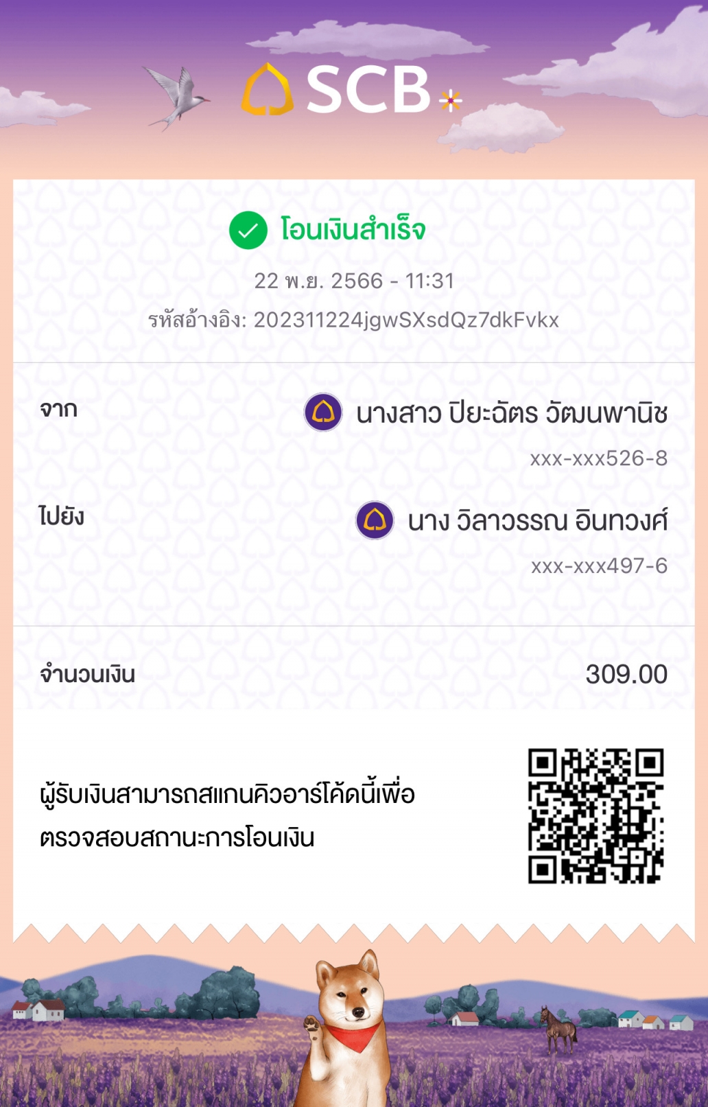 แจ้งการโอนเงินจาก