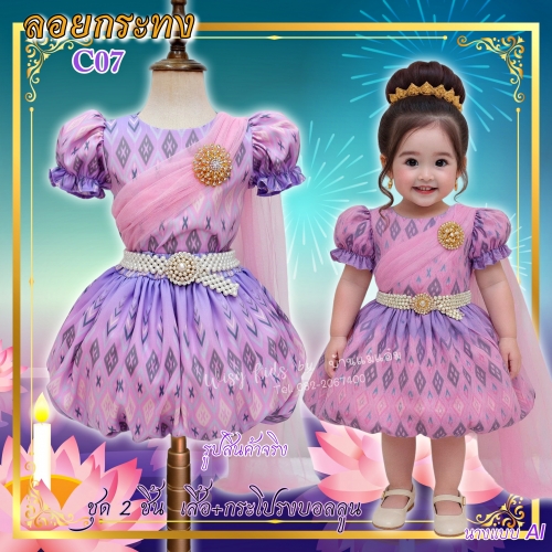 C07-4XL พร้อมส่ง (ชุดลอยกระทง สีชมพู)